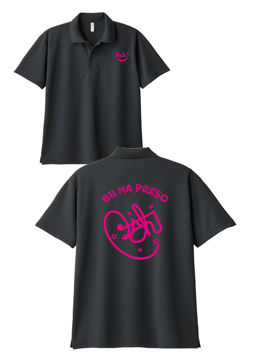 ドライポロシャツ(ブラック) プリント★ ピンク