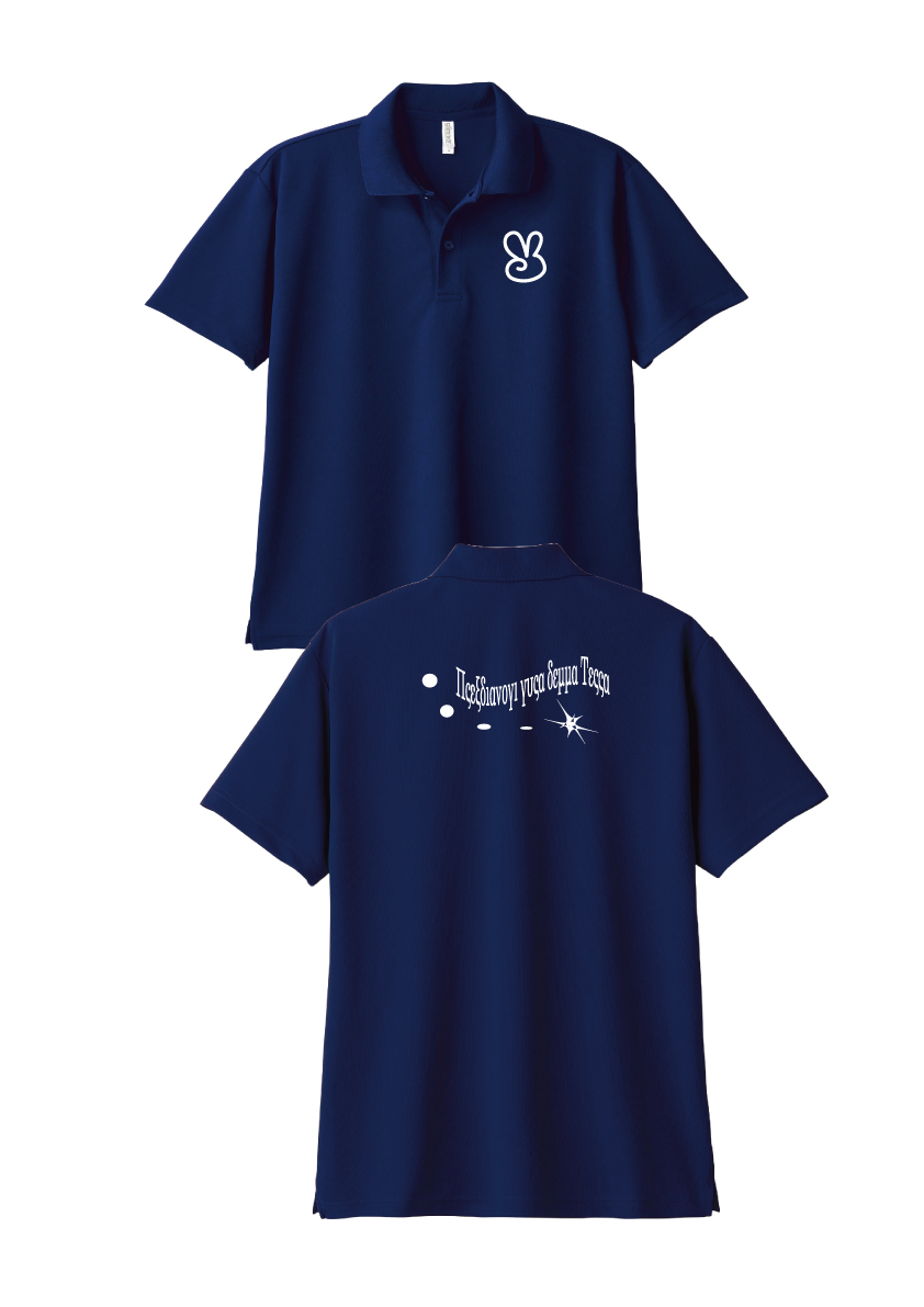ドライポロシャツ(メトロブルー) プリント★ホワイト