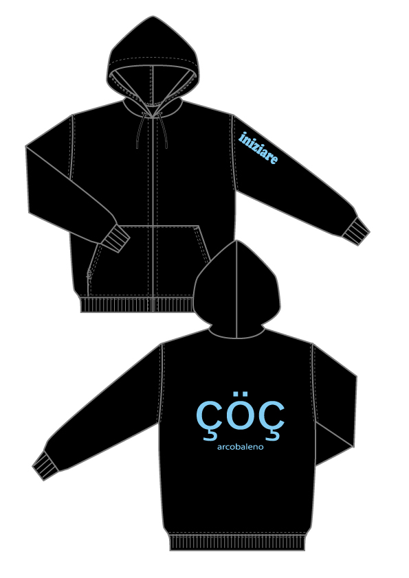 8.4オンス ジップパーカー ブラック (プリント ブルー)